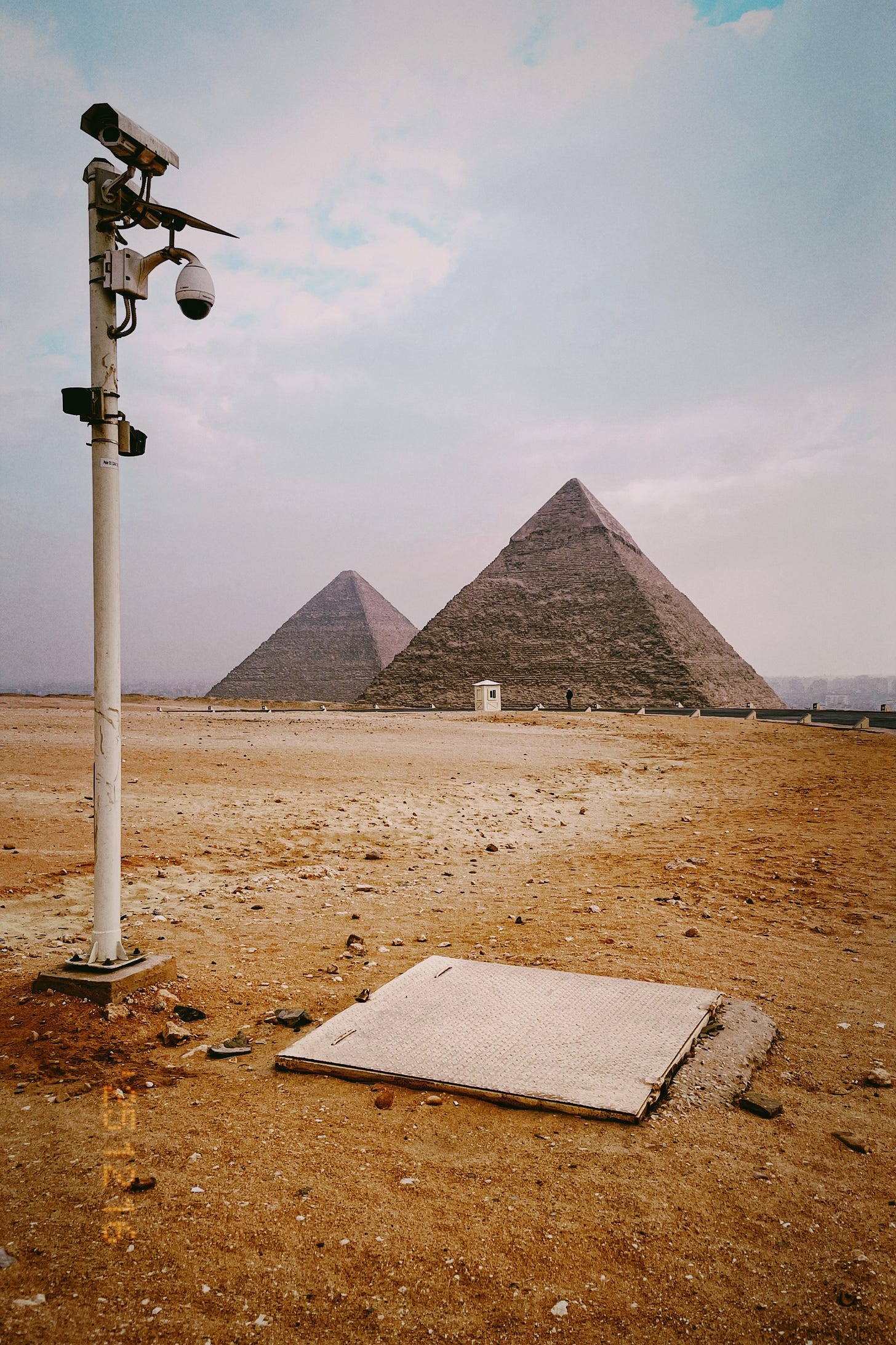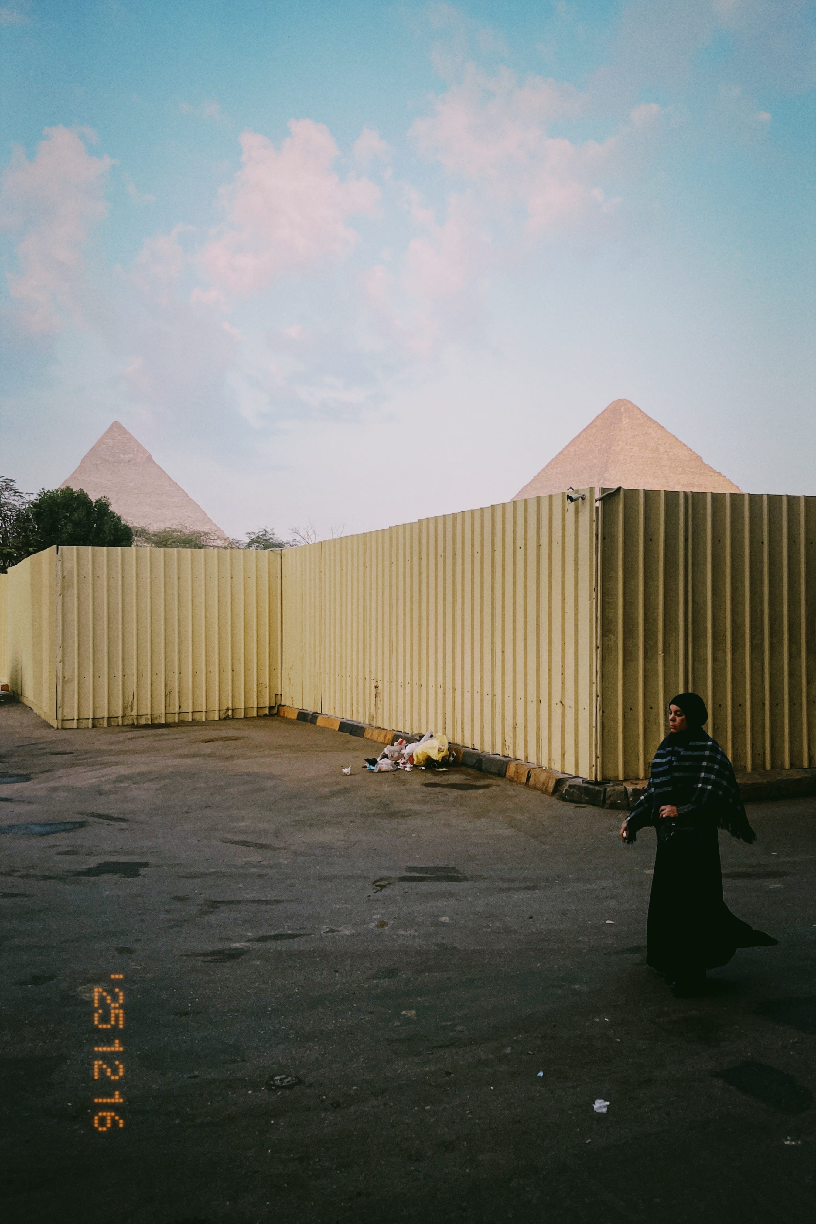 There are two ways through the barrier separating the city of Giza from the pyramids. The first is marked by a long, shallow pavilion of pale stone with “The Great Gate” written on the façade in English, Arabic, and hieroglyphics. Its interior is a museum-like space that offers all the amenities of modern site-visiting, where the daily madness of Egyptian life has been meticulously designed out of existence.