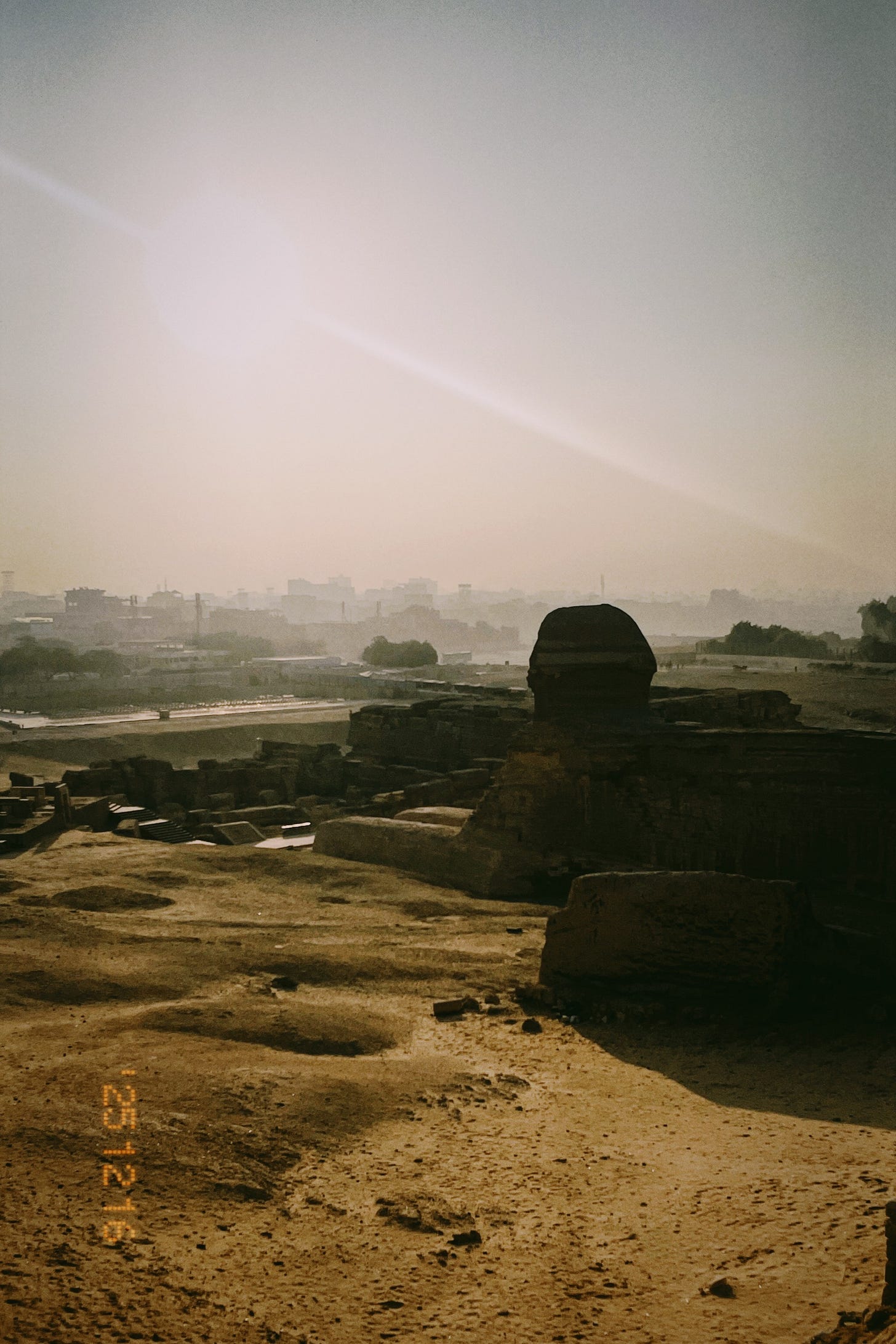 Once through the gate, I was on an empty road that rose gently toward the pyramids. There was no one else around. The morning sun crept across the plateau, brushing first the tips of the ancient prisms, then, nearer sea-level and immediately to my left, stripping the Great Sphinx of its shadow. Its face startled me. It was like I’d never seen it before. Perhaps I hadn’t, not really. The Sphinx, like Rodin’s Thinker, is a posture piece, famous, in this case, for its repose of eternal watchfulness.