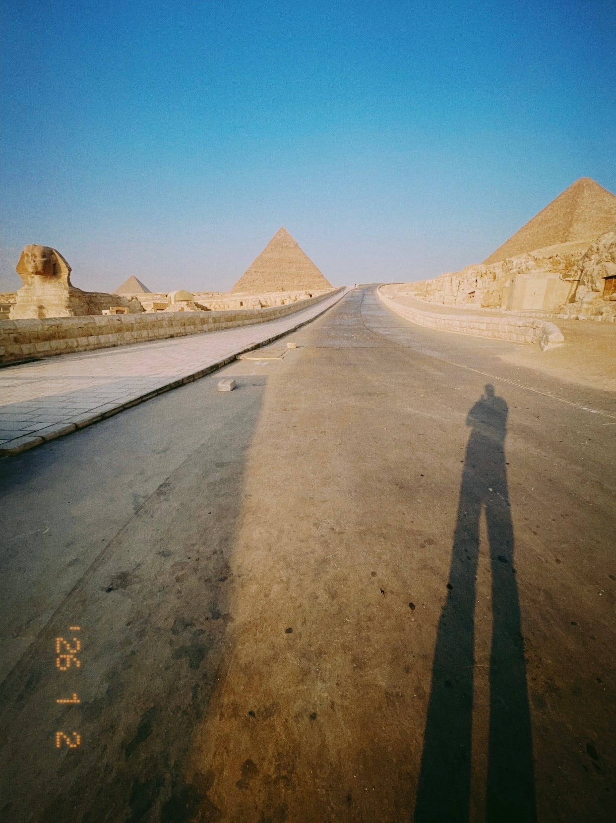 I walked and kept walking, my mind bursting with pointless hypotheticals, like whether I could sooner learn ancient Egyptian or grab a wasp out of the air with chopsticks, until I came to a stop, rigid with awe. The road was still empty; I had a completely unpeopled view of the pyramids. A shiver ran from my tailbone to the top of my head. It wasn’t that I was seeing something spectacular. It was that this was the last place on earth I should be seeing it alone. The aloneness, that’s what was spine-tingling. I am not possessive, but for a moment I let myself believe all this was here just for me.